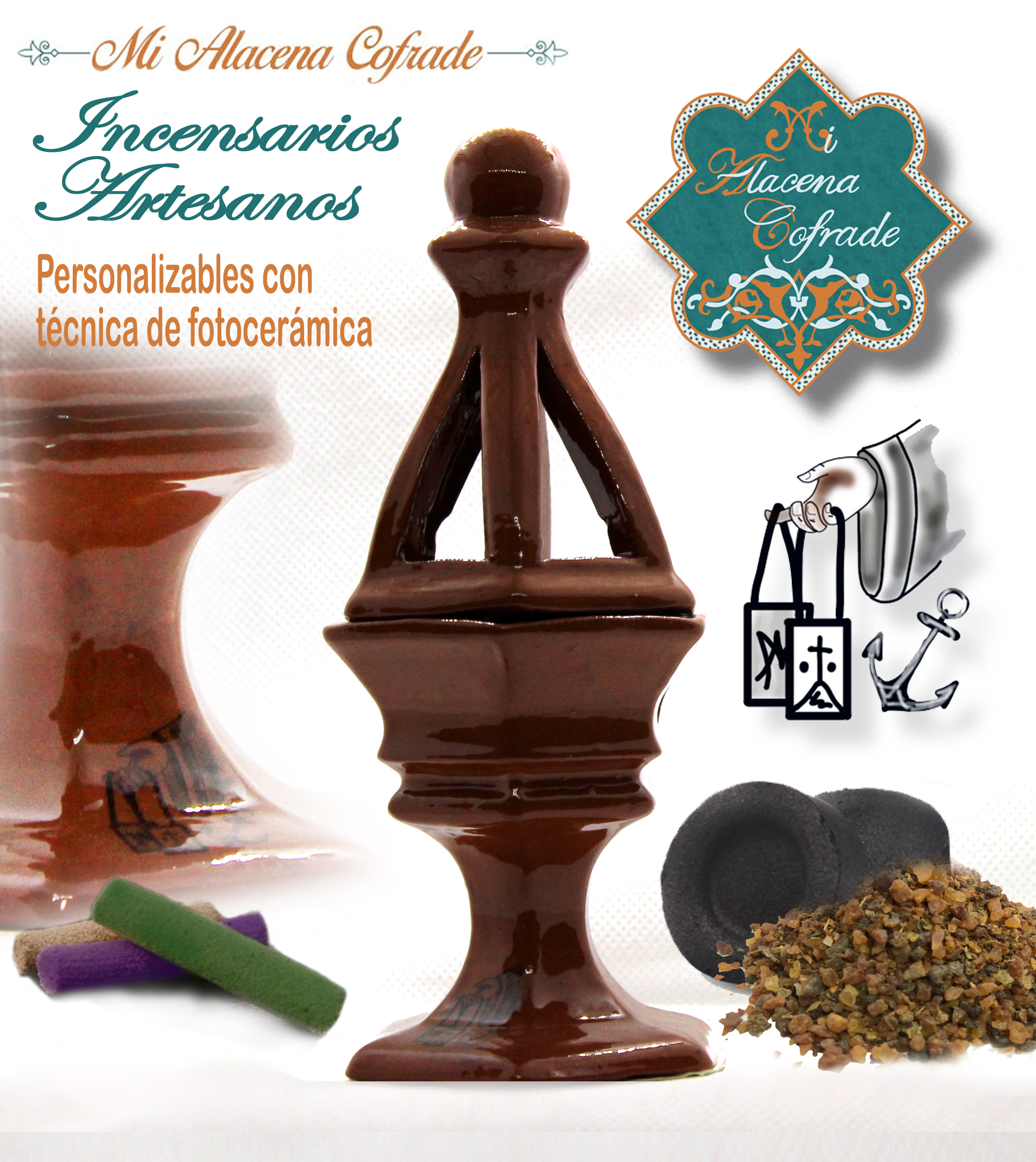 Incensario realizado artesanalmente en barro cocido y esmaltado con técnicas tradicionales.