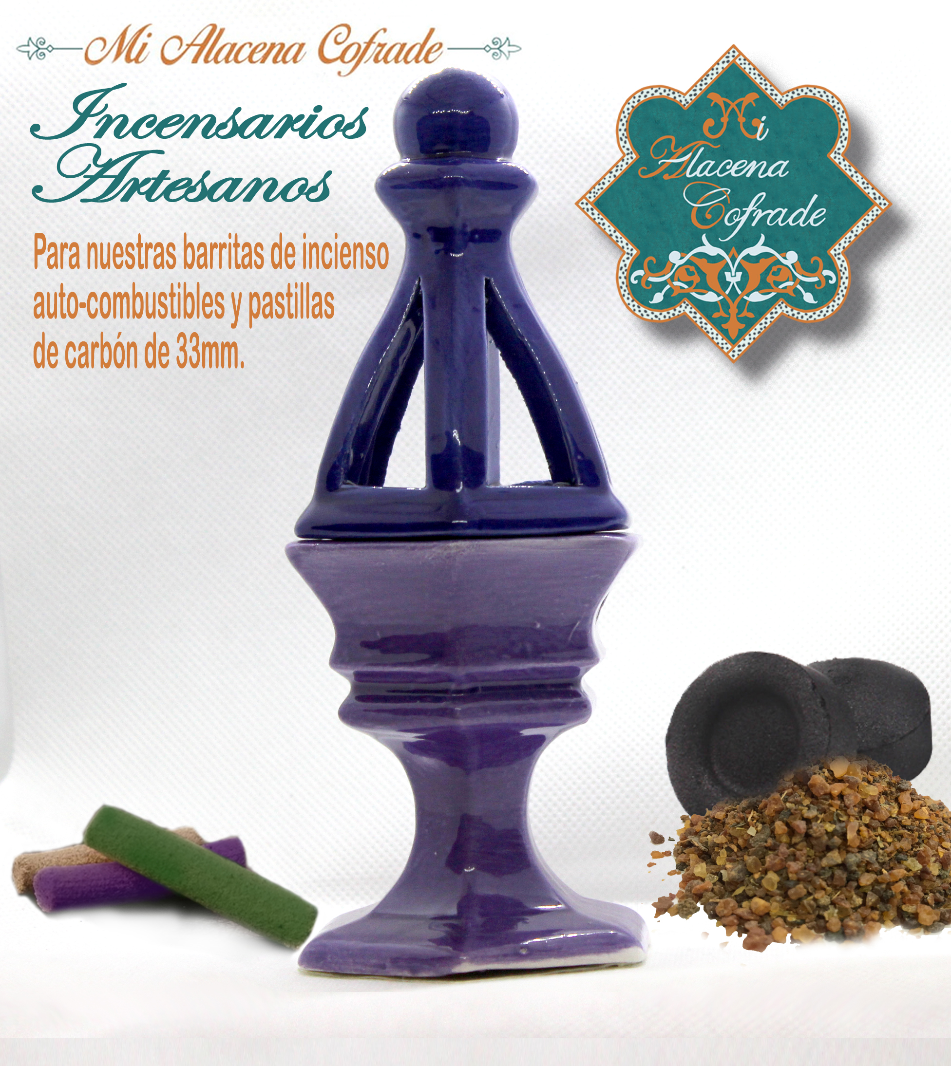 Incensario realizado artesanalmente en barro cocido y esmaltado con técnicas tradicionales.