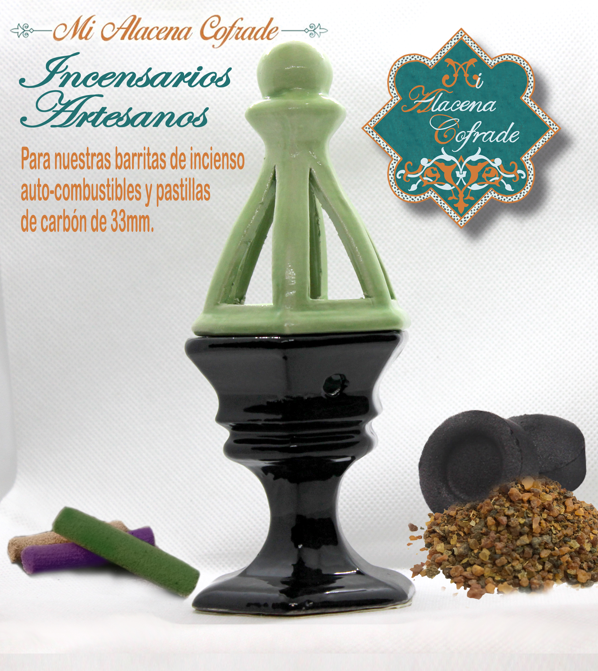 Incensario realizado artesanalmente en barro cocido y esmaltado con técnicas tradicionales.