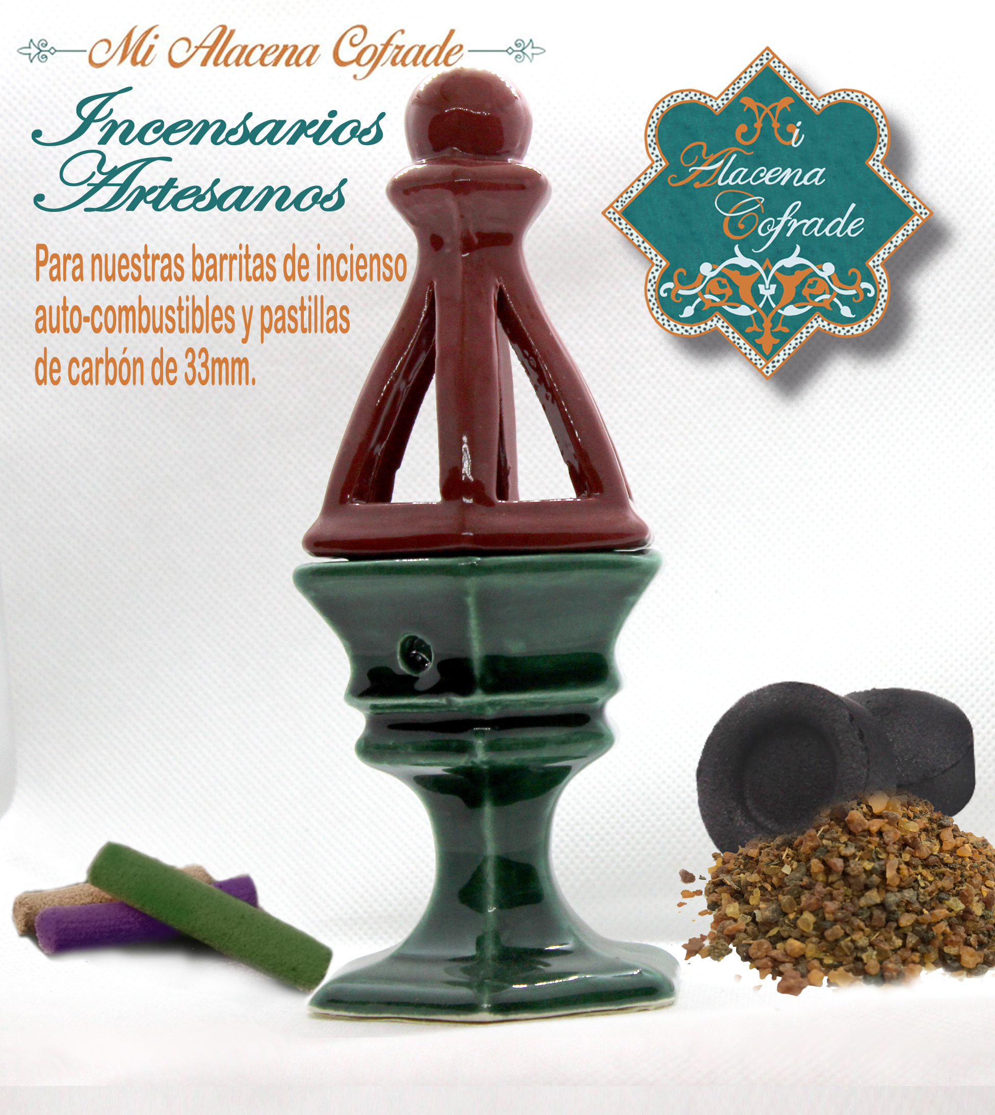 Incensario realizado artesanalmente en barro cocido y esmaltado con técnicas tradicionales.