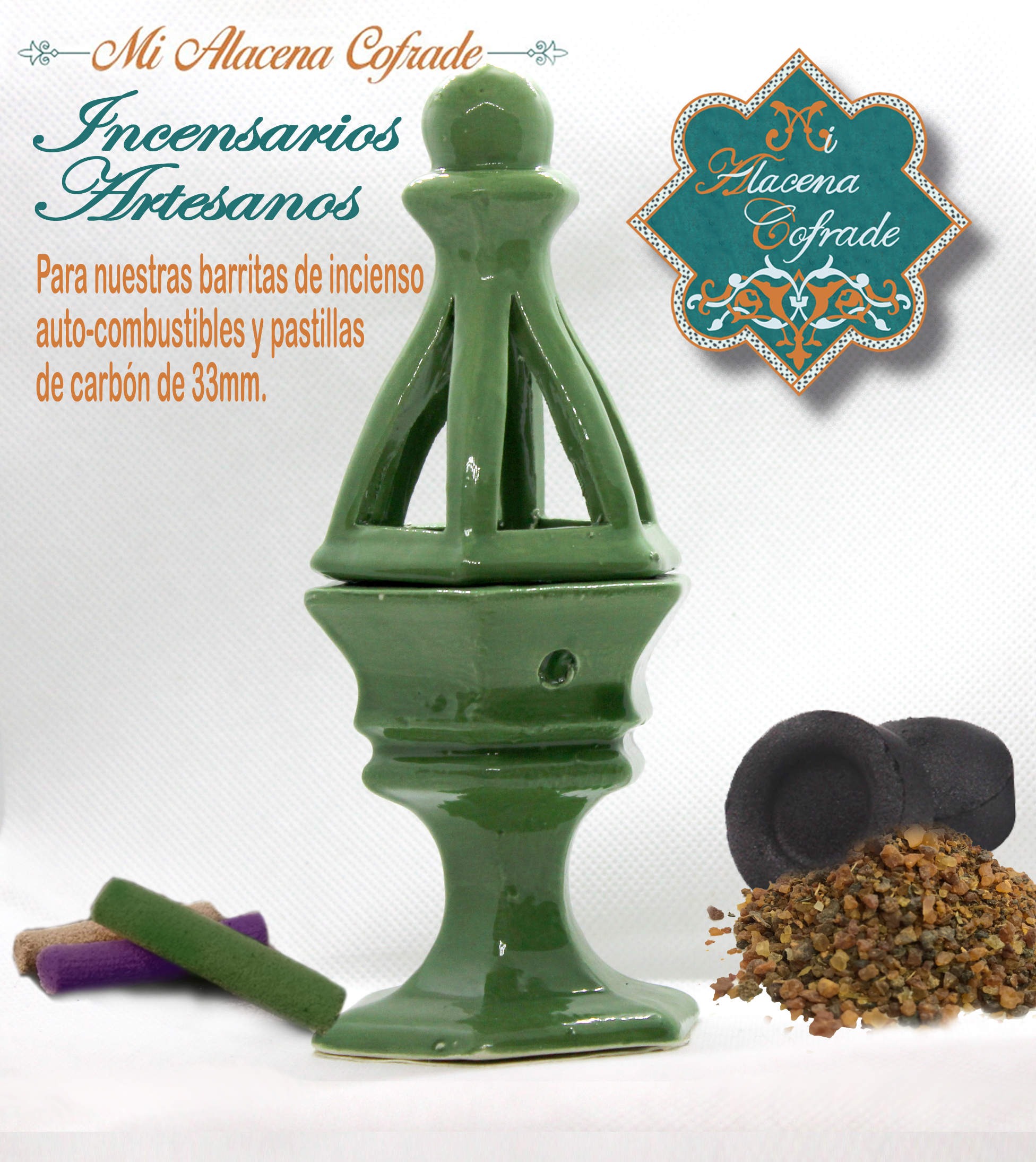 Incensario realizado artesanalmente en barro cocido y esmaltado con técnicas tradicionales.