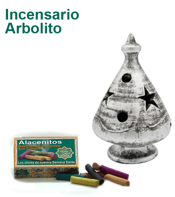 Incensario de Barro Arbolito Color Plata y Caja de Surtido