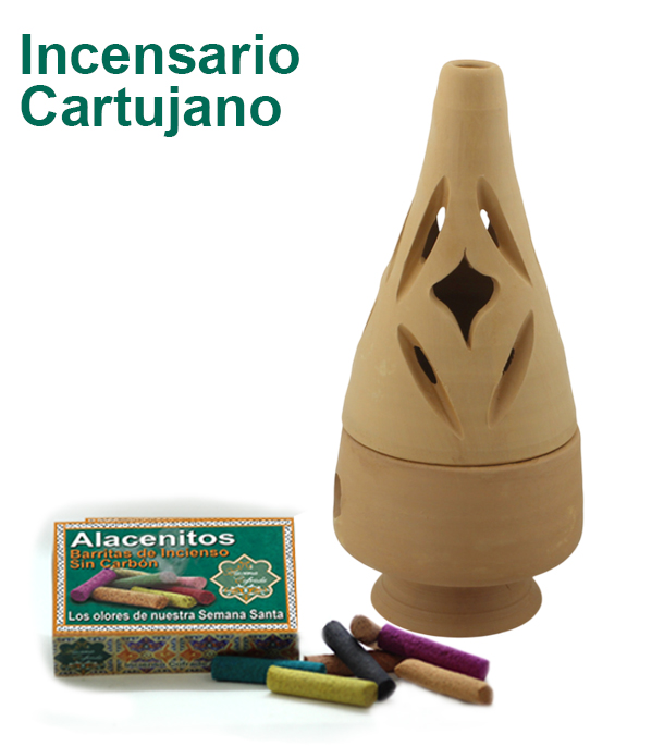Incensario realizado en barro cocido sin esmaltar con una caja de 24 Barritas Surtidas de Incienso sin carbón.