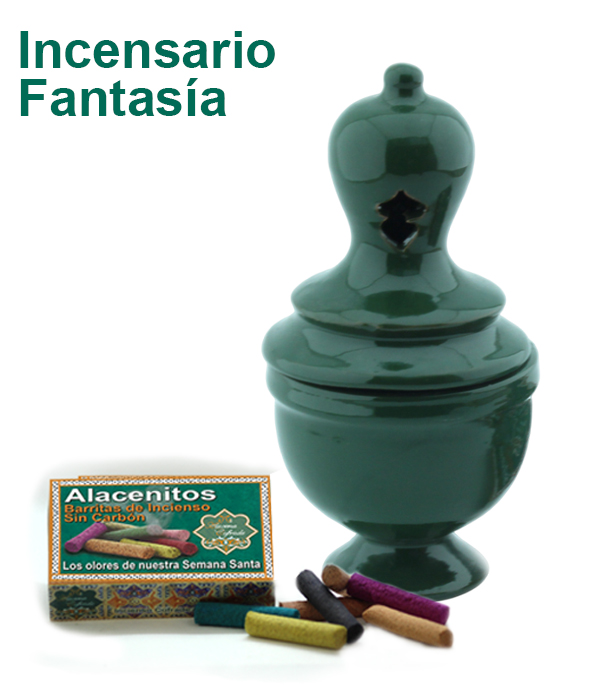 Incensario de barro Fantasía Vidriado color Verde Oliva y caja de Surtido
