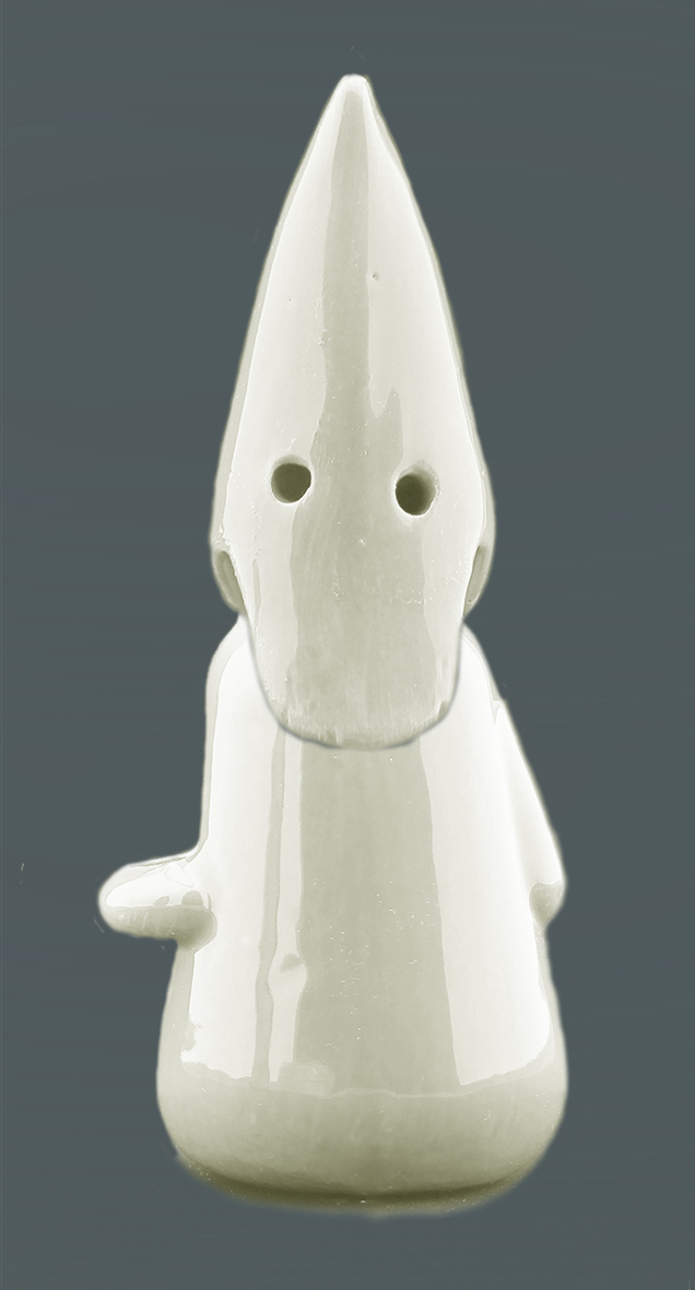 Incensario realizado en cerámica compuesto de dos piezas, Capirote y cuerpo el cual tiene en el lateral a modo de brazo un hueco para colocar el cirio al cuadril, siendo el cirio la barrita de incienso sin carbón de esta manera se disfruta del incienso viendo cómo de va quemando la barrita.