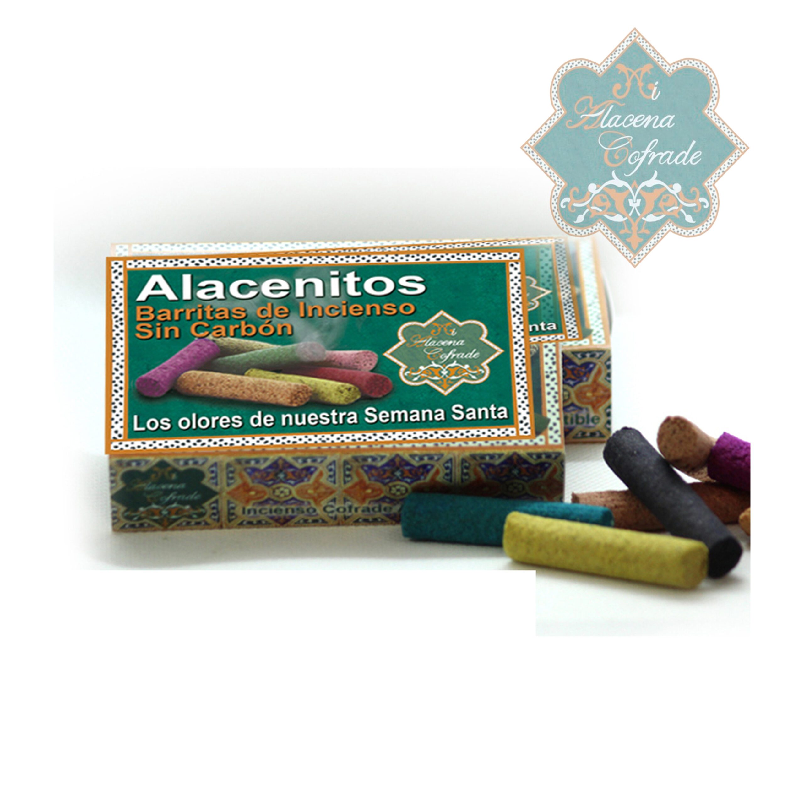 TIPOS DE INCIENSOS: Las barritas de incienso están bañadas completamente de su color, asimilándose a los cirios de los tramos de nazarenos de las cofradías.